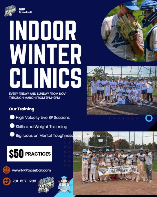 Spots are limited. Winter travel tournaments with the NRP Astros or other National programs may be offered for participating players. Let's crush the cold weather and dominate come spring!